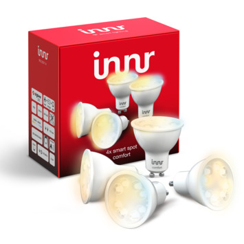 Heb jij een gezellige sfeer nodig in huis? Dat kun je nu produceren met de kleurrijke 4-pack Innr LED spotlamp. De verlichtingsbron heeft een lichtopbrengst van 350 lumen. De kleurtemperatuur en lichtkleur is in te stellen van 2200 kelvin tot maximaal 5000 kelvin. Je kunt kiezen tussen de lichtkleuren koud wit en warm wit. Deze zijn te bedienen met de Smarthome applicatie via je telefoon of tablet. De lamp bevat een GU10 fitting en heeft een wattage van 5.1 Watt. De Led spotlamp heeft een lange levensduur en je bespaart ook nog eens op je energiekosten! De energieklasse waar deze lamp onder valt is A+. Dit is één van de meest zuinige energieklasses. Kortom, de Innr Led spotlamp is een ideale verlichtingsbron voor in huis.