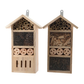 Het is een goed huisje en hij hangt goed aan een spijker. De insecten komen er goed op af.
