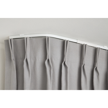 - Door de bocht in de roede sluiten de gordijnen helemaal aan op de wand of het kozijn