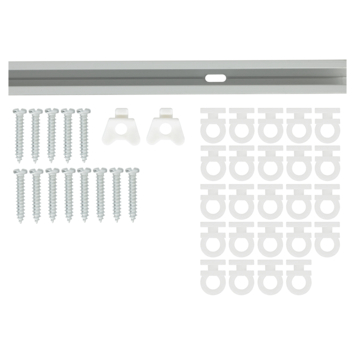 De Intensions complete set gordijnrail Basic aluminium 200 cm is het instapmodel binnen ons gordijnrailassortiment. De rail heeft een lengte van 200 cm en is gemaakt van aluminium. De rail is voorzien van ponsgaten waardoor de rail direct tegen het plafond geschroefd kan worden. De rail wordt compleet geleverd met 24 runners, eindstoppers en 13 schroeven. De rail is uitgevoerd in de kleur aluminium geanodiseerd. Voor de gordijnrail Basic zijn extra runnners of wandsteunen los verkrijgbaar.
