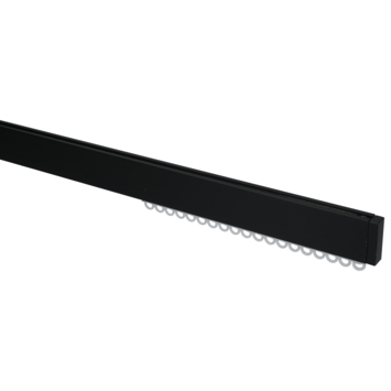 De gordijnrail Design mat zwart 150 cm is een prachtige gordijnrail welke uitstekend past in elk interieur. Het rechthoekige design van deze rail valt echt op! Doordat de rail van aluminium is gemaakt is deze zeer stevig en bewegen de runners soepel door de rails. Deze gordijnrail is geschikt voor alle soorten plooigordijnen. De rail wordt standaard geleverd met 18 runners, 4 plafondsteunen en 2 eindstoppers. De montage met de bijgeleverde plafondsteunen gaat erg eenvoudig en de rail is in een handomdraai op maat te maken met een ijzerzaag. Met deze complete set heb je alles in huis om je gordijn makkelijk en snel te installeren. Er zijn ook tal van accessoires te koop voor de gordijnrail Design.