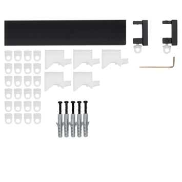 De gordijnrail Design mat zwart 250 cm is een prachtige gordijnrail welke uitstekend past in elk interieur. Het rechthoekige design van deze rail valt echt op! Doordat de rail van aluminium is gemaakt is deze zeer stevig en bewegen de runners soepel door de rails. Deze gordijnrail is geschikt voor alle soorten plooigordijnen. De rail wordt standaard geleverd met 30 runners, 6 plafondsteunen en 2 eindstoppers. De montage met de bijgeleverde plafondsteunen gaat erg eenvoudig en de rail is in een handomdraai op maat te maken met een ijzerzaag. Met deze complete set heb je alles in huis om je gordijn makkelijk en snel te installeren. Er zijn ook tal van accessoires te koop voor de gordijnrail Design.