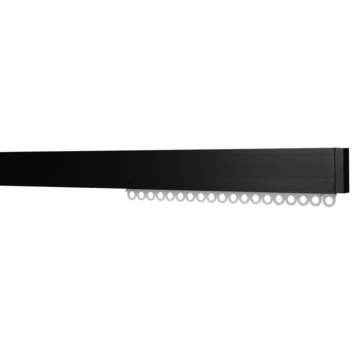 De gordijnrail Design mat zwart 300 cm is een prachtige gordijnrail welke uitstekend past in elk interieur. Het rechthoekige design van deze rail valt echt op! Doordat de rail van aluminium is gemaakt is deze zeer stevig en bewegen de runners soepel door de rails. Deze gordijnrail is geschikt voor alle soorten plooigordijnen. De rail wordt standaard geleverd met 36 runners, 7 plafondsteunen en 2 eindstoppers. De montage met de bijgeleverde plafondsteunen gaat erg eenvoudig en de rail is in een handomdraai op maat te maken met een ijzerzaag. Met deze complete set heb je alles in huis om je gordijn makkelijk en snel te installeren. Er zijn ook tal van accessoires te koop voor de gordijnrail Design.
