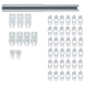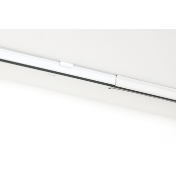De Intensions complete set uitschuifbare gordijnrail Plus wit 160-300 cm is een kwalitatief goede metalen gordijnrail. De rail is slank vormgegeven en is uitgevoerd in de kleur wit. Het handige van deze rail is dat die uitschuifbaar is. De rail heeft dus geen vaste lengte maar past altijd tussen de 160 cm tot 300 cm. Op deze manier hoef je de gordijnrails niet op maat te zagen. Let er wel op dat de gordijnen wat stroever kunnen glijden bij het stuk waar je de rail kunt uitschuiven. Het gebruik van een trekstang wordt aangeraden. De uitschuifbare Plus rail wordt helemaal compleet geleverd inclusief 7 montagesteunen geschikt voor plafondmontage, 36 runners om de gordijnen aan op te hangen en 2 eindstoppers om de rail af te sluiten. De rail is geschikt om alle type plooigordijnen aan op te hangen. Bij deze rail kunnen diverse accessoires gekocht worden, zoals montagesteunen voor montage aan de wand, 2 soorten bochten en diverse onderdelen.