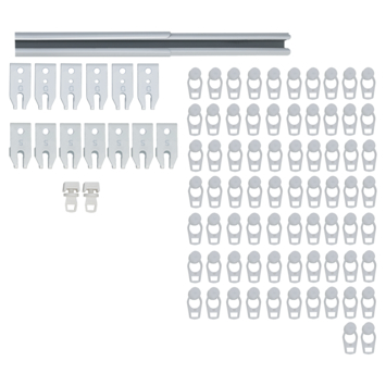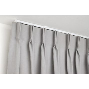 De Intensions complete set uitschuifbare gordijnrail Plus wit 310-600 cm is een kwalitatief goede metalen gordijnrail. De rail is slank vormgegeven en is uitgevoerd in de kleur wit. Het handige van deze rail is dat die uitschuifbaar is. De rail heeft dus geen vaste lengte maar past altijd tussen de 310 cm tot 600 cm. Op deze manier hoef je de gordijnrails niet op maat te zagen. Let er wel op dat de gordijnen wat stroever kunnen glijden bij het stuk waar je de rail kunt uitschuiven. Het gebruik van een trekstang wordt aangeraden. De uitschuifbare Plus rail wordt helemaal compleet geleverd inclusief 13 montagesteunen geschikt voor plafondmontage, 72 runners om de gordijnen aan op te hangen en 2 eindstoppers om de rail af te sluiten. De rail is geschikt om alle type plooigordijnen aan op te hangen. Bij deze rail kunnen diverse accessoires gekocht worden, zoals montagesteunen voor montage aan de wand, 2 soorten bochten en diverse onderdelen.