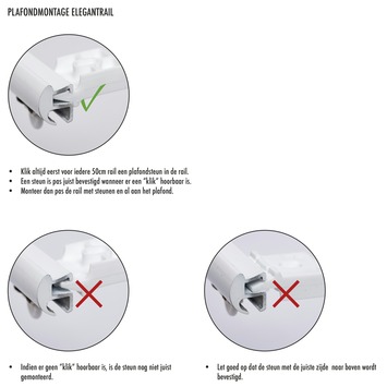 Met deze stalen rail kiest u voor een zeer degelijk railsysteem met een breed assortiment aan accessoires, inlusief bochten. Deze rail wordt u als complete set aangeboden met plafondsteunen, zo heeft u alles in huis om uw gordijn te installeren.