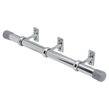 Met de Intensions montagesteun kun je gordijnroedes met een diameter van 19 mm gemakkelijk ophangen. De montagesteunen zijn geschikt voor wandmontage dus de steunen kunnen zowel op de muur als op het kozijn gemonteerd worden. Bij een breedte tot 180 cm gebruik je 2 steunen en bij een breedte vanaf 180 cm plaats je een extra steun in het midden. Deze steunen worden per 3 stuks geleverd in de kleur chroom. Ook worden er 2 kunststof eindkapjes geleverd die ervoor zorgen dat de buitenste gordijnringen niet snel van de rail af schuiven. De eindkapjes zijn grijs van kleur.