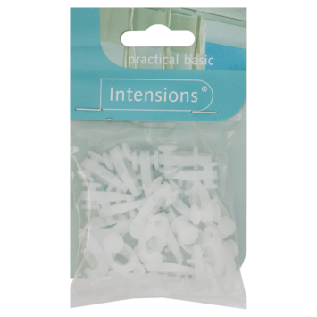 Deze Intensions runner gordijnrail Plus wit 25 stuks zijn geschikt voor de gordijnrail Plus. Standaard wordt de gordijnrail Plus als complete set geleverd inclusief runners maar wanneer er meer runners nodig zijn kan dit gemakkelijk aangevuld worden met deze set. De runners zijn geschikt voor gordijnen met een enkele, dubbele of driedubbele plooi. Ze kunnen niet worden gebruikt voor een wavegordijn. De set bestaat uit 25 stuks in de kleur wit. Gemiddeld gebruik je 10 runners per meter breedte.