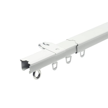 Met deze stalen rail kiest u voor een zeer degelijk railsysteem met een breed assortiment aan accessoires, inlusief bochten. Deze rail wordt u als complete set aangeboden met plafondsteunen, zo heeft u alles in huis om uw gordijn te installeren.