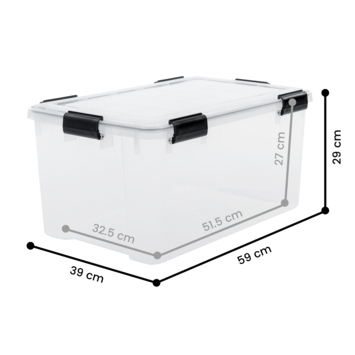 - Ruime inhoud van 50 liter met transparant deksel voor snel zicht op de inhoud