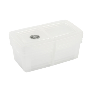 Iris Basic Clear Box is een set van 3 trendy transparante opbergdozen met een inhoud van 5 liter per box. Handig om diverse items te bewaren en stabiel op of in elkaar te stapelen. Toch een maatje groter nodig? We bieden deze nestbare box van 342 mm lang, 190 mm breed en 150 mm hoog ook aan met een inhoudsvermogen van 11 en 30 liter. Goed om te weten: de IRIS Modular Clear Box wordt geleverd inclusief deksels.