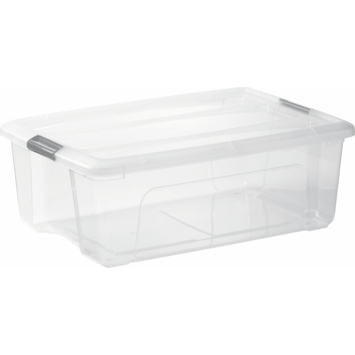 Iris opbergbox Click 30 liter transparant met grijze clips inclusief deksel