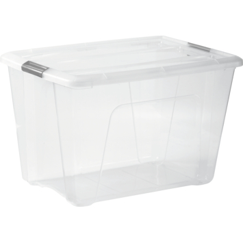 Iris opbergbox Click 60 liter transparant met grijze clips inclusief deksel