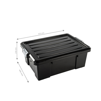 Deze Heavy Duty opbergbox van IRIS is gemaakt van extra sterke kunststof en heeft een inhoud van 43 liter. De stapelbare opbergbox is voorzien van een deksel met sluitclips en kan een gewicht van maar liefst 130 kg dragen. Deze box is perfect voor de doe-het-zelver en iedereen die nood heeft aan een onverslijtbare opbergbox. De box is niet alleen stapelbaar, maar ook nog eens nestbaar. Deze kan zowel binnen als buiten gebruikt worden voor vele, vele doeleinden. Bijvoorbeeld als opbergbox voor gereedschap in je garage.