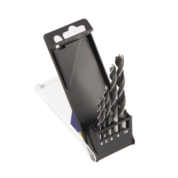 IRWIN houtborenset IW4046601 is een set met 5 houtspiraalboren in een handige opbergcassette De boren zijn heet gerold van chroom vanadium en hebben een schacht met een Bradpoint centreerpunt voor snelle schone gaten in hout laminaat en spaanplaat Afmetingen: 4/5/6/8/10mm
