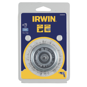 IRWIN komstaaldraadborstel IW8088409 bevestig je op een boormachine voor grof schuurwerk. Geschikt voor het schuren van metaal. Het gebruikte staaldraad is fijn van structuur. De borstel is komvormig. Diameter: 75mm.