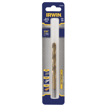 IRWIN HSS Titanium boor 10502596 is een metaalboor met de volgende afmetingen: Ø 8.5mm / werklengte 75mm / totale lengte 117mm. Inhoud: 1 stuk. HSS TITANIUM metaalboren van IRWIN zijn geschikt voor het boren in hard staal en hard gelegeerd staal. De speciaal ontworpen 135° boorpunt zorgt voor een perfecte centreerkwaliteit en vereist minder inspanning/invoerdruk. Het boorlichaam van hoogwaardig HSS staal met Titaniumnitridecoating (TiN) maakt de boor beter hitte- en wrijvingsbestendig, waardoor deze een levensduur heeft die 4x langer is dan van vergelijkbare standaardboren. Ook zeer geschikt voor het boren van allerlei non-ferromaterialen, kunststof, pvc en hout. Voldoen aan kwaliteitsnorm DIN 338. Geschikt voor alle gangbare gesnoerde boormachines en accuboormachines.