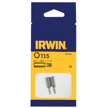 IRWIN 10504837 is een Torx schroefbit T15 met een lengte van 25mm Geschikt voor alle accuschroefboormachines Inhoud: 2 stuks Nauwkeurig vervaardigd volgens de laatste technieken van de hoogste standaard