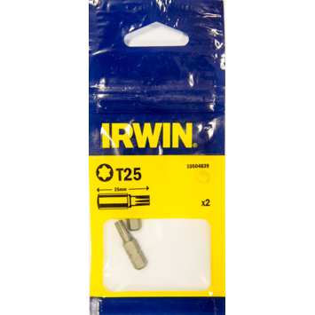 IRWIN 10504839 is een Torx schroefbit T25 met een lengte van 25mm Geschikt voor alle accuschroefboormachines Inhoud: 2 stuks Nauwkeurig vervaardigd volgens de laatste technieken van de hoogste standaard