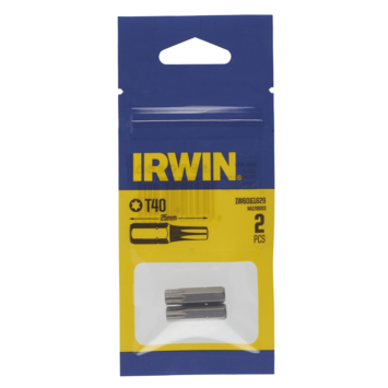 IRWIN IW6061629 is een Torx schroefbit T40 met een lengte van 25mm Geschikt voor alle accuschroefboormachines Inhoud: 2 stuks Nauwkeurig vervaardigd volgens de laatste technieken van de hoogste standaard