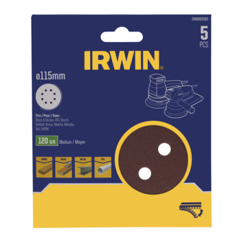 Irwin schuurschijf rond Ø115 mm zelfhechtend K120, 5 stuks