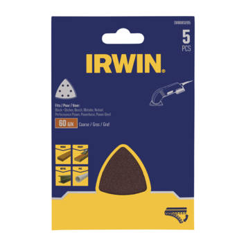 Irwin schuurvel driekhoek 95 x 95 mm zelfhechtend K60, 5 stuks
