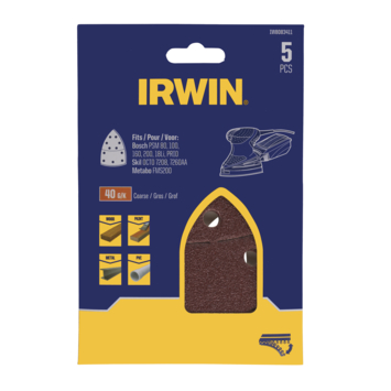 Irwin schuurvel voor multischuurmachines Bosch PSM, Skil, Lux, Metabo, zelfklevend K40, 5 stuks