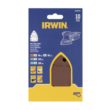 Irwin schuurvel voor multischuurmachines Bosch PSM, Skil, Lux, Metabo, zelfklevend K40/K80/K120/K180, 10 stuks
