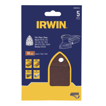 Irwin schuurvel voor multischuurmachines Bosch PSM, Skil, Lux, Metabo, zelfklevend K80, 5 stuks