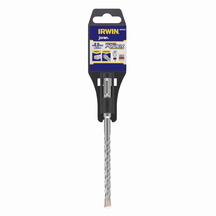 IRWIN Speed Hammer Power SDS+ betonboor IW2039120 8mm heeft een SDS+ aansluiting en is geschikt voor het boren in beton natuursteen en gelijkaardige harde metalen De boor is voorzien van een speciale groef voor een goede gruisafvoer en is extra gehard zodat hij minder snel breekt en extra sterk is Verder heeft de boorpunt een hoek van 160° zodat u er zelfs effectief mee in beton kunt boren De boor is te gebruiken op alle standaard typen boorhamers De boor is 160mm lang en heeft een diameter van 8mm
