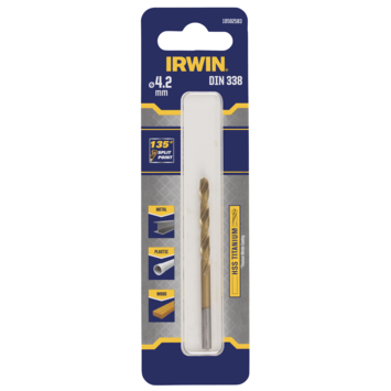IRWIN HSS Titanium boor 10502583 is een metaalboor met de volgende afmetingen: Ø 42mm / werklengte 43mm / totale lengte 75mm Inhoud: 1 stuk HSS TITANIUM metaalboren van IRWIN zijn geschikt voor het boren in hard staal en hard gelegeerd staal De speciaal ontworpen 135° boorpunt zorgt voor een perfecte centreerkwaliteit en vereist minder inspanning/invoerdruk Het boorlichaam van hoogwaardig HSS staal met Titaniumnitridecoating (TiN) maakt de boor beter hitte- en wrijvingsbestendig waardoor deze een levensduur heeft die 4x langer is dan van vergelijkbare standaardboren Ook zeer geschikt voor het boren van allerlei non-ferromaterialen kunststof pvc en hout Voldoen aan kwaliteitsnorm DIN 338 Geschikt voor alle gangbare gesnoerde boormachines en accuboormachines