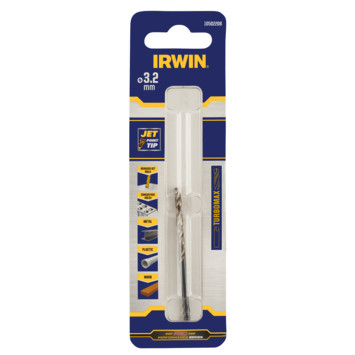IRWIN HSS Turbomax boor 10502208 is een metaalboor met de volgende afmetingen: Ø 32mm / werklengte 36mm / totale lengte 65mm Inhoud: 1 stuk HSS TURBOMAX metaalboren van IRWIN hebben een unieke 100° punt die er voor zorgt dat zelfs op gebogen oppervlakken de boor niet wegloopt en de boor zich 10x sneller vastbijt in het metaal De boorkop zelf is geslepen in 140° wat zorgt voor minimale braamvorming en een gladde afwerking Het boorlichaam is vervaardigd van W9 snelstaal voor scherpere snijranden en optimale hittebestendigheid en is extra gehard tot 63-66 HRC Ook geschikt voor roesvrij staal en allerlei non-ferromaterialen kunststof pvc hout en hardhout Vergeet echter nooit koelmiddel te gebruiken bij boren in roestvrij staal De schacht heeft onderaan 3 vlakke zijden voor een optimale klemming in de boorkop om slippen tegen te gaan Geschikt voor alle gangbare gesnoerde boormachines en accuboormachines