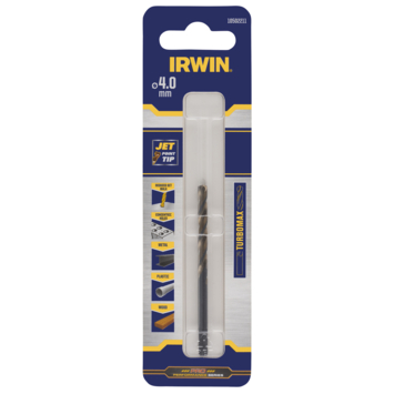 IRWIN HSS Turbomax boor 10502211 is een metaalboor met de volgende afmetingen: Ø 40mm / werklengte 43mm / totale lengte 75mm Inhoud: 1 stuk HSS TURBOMAX metaalboren van IRWIN hebben een unieke 100° punt die er voor zorgt dat zelfs op gebogen oppervlakken de boor niet wegloopt en de boor zich 10x sneller vastbijt in het metaal De boorkop zelf is geslepen in 140° wat zorgt voor minimale braamvorming en een gladde afwerking Het boorlichaam is vervaardigd van W9 snelstaal voor scherpere snijranden en optimale hittebestendigheid en is extra gehard tot 63-66 HRC Ook geschikt voor roesvrij staal en allerlei non-ferromaterialen kunststof pvc hout en hardhout Vergeet echter nooit koelmiddel te gebruiken bij boren in roestvrij staal De schacht heeft onderaan 3 vlakke zijden voor een optimale klemming in de boorkop om slippen tegen te gaan Geschikt voor alle gangbare gesnoerde boormachines en accuboormachines