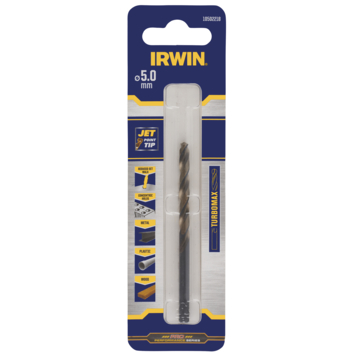 IRWIN HSS Turbomax boor 10502218 is een metaalboor met de volgende afmetingen: Ø 50mm / werklengte 52mm / totale lengte 86mm Inhoud: 1 stuk HSS TURBOMAX metaalboren van IRWIN hebben een unieke 100° punt die er voor zorgt dat zelfs op gebogen oppervlakken de boor niet wegloopt en de boor zich 10x sneller vastbijt in het metaal De boorkop zelf is geslepen in 140° wat zorgt voor minimale braamvorming en een gladde afwerking Het boorlichaam is vervaardigd van W9 snelstaal voor scherpere snijranden en optimale hittebestendigheid en is extra gehard tot 63-66 HRC Ook geschikt voor roesvrij staal en allerlei non-ferromaterialen kunststof pvc hout en hardhout Vergeet echter nooit koelmiddel te gebruiken bij boren in roestvrij staal De schacht heeft onderaan 3 vlakke zijden voor een optimale klemming in de boorkop om slippen tegen te gaan Geschikt voor alle gangbare gesnoerde boormachines en accuboormachines