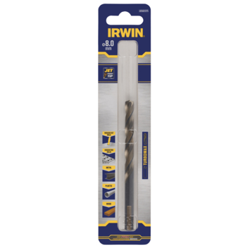 IRWIN HSS Turbomax boor 10502225 is een metaalboor met de volgende afmetingen: Ø 80mm / werklengte 75mm / totale lengte 117mm Inhoud: 1 stuk HSS TURBOMAX metaalboren van IRWIN hebben een unieke 100° punt die er voor zorgt dat zelfs op gebogen oppervlakken de boor niet wegloopt en de boor zich 10x sneller vastbijt in het metaal De boorkop zelf is geslepen in 140° wat zorgt voor minimale braamvorming en een gladde afwerking Het boorlichaam is vervaardigd van W9 snelstaal voor scherpere snijranden en optimale hittebestendigheid en is extra gehard tot 63-66 HRC Ook geschikt voor roesvrij staal en allerlei non-ferromaterialen kunststof pvc hout en hardhout Vergeet echter nooit koelmiddel te gebruiken bij boren in roestvrij staal De schacht heeft onderaan 3 vlakke zijden voor een optimale klemming in de boorkop om slippen tegen te gaan Geschikt voor alle gangbare gesnoerde boormachines en accuboormachines