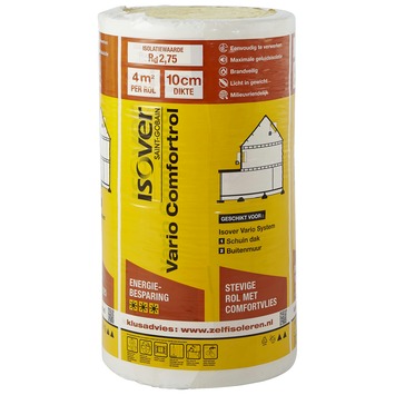 De Isover Vario Comfortrol zorgt voor warmte- en geluidsisolatie van een schuin dak of buitenmuur. U gebruikt de rol in combinatie met de Vario KM Klimaatfolie. De glaswolrol is voorzien van zachte bekleding en is zeer stevig. Dit zorgt ervoor dat het materiaal makkelijk te verwerken is. De Comfortrol heeft een isolatiewaarde (Rd) van 2,75 en voldoet daarmee ruimschoots aan het minimale isolatieniveau. Hoe hoger de Rd-waarde, des te groter is namelijk de energiebesparing. De Comfortrol van Isover meet 10x80x500cm, in totaal 4 vierkante meter, en heeft een dikte van 100mm. Let op: draag bij het werken met glaswol beschermende kleding, het kan jeuk veroorzaken.