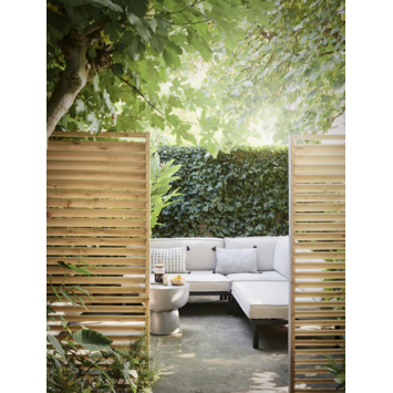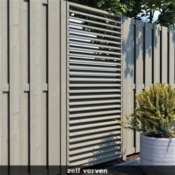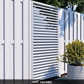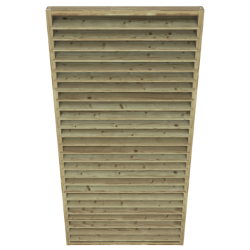 Het Jaloeziescherm is gemaakt van meerdere lamellen voor een shutter effect. Het lamellenscherm ook gekend als een shutterscherm is gemaakt van geïmpregneerd geschaafd vuren hout. Door het impregneren van het hout is dit scherm beter beschermd tegen weersomstandigheden. Dit scherm is ideaal te gebruiken voor bijvoorbeeld tussen een regulier tussenschermen voor of als afscheiding onder een overkapping. De totale dikte is ca. 8 cm en heeft hierdoor een robuuste uitstraling.