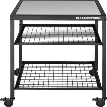 Met deze barbecue tafel zet je jouw grill stevig en veilig neer. De tafel geeft je extra werkruimte om gerechten voor te bereiden of je barbecue-accessoires te plaatsen. Onder de tafel vind je handige schappen waar je barbecuegereedschap en andere spullen netjes opbergt. Dankzij het compacte ontwerp past de tafel in verschillende buitenruimtes, van kleine balkons tot ruime terrassen. Zo houd je je barbecueplek georganiseerd en binnen handbereik tijdens het koken. De afmetingen zijn 77,5 x 76 x 96,5 cm.