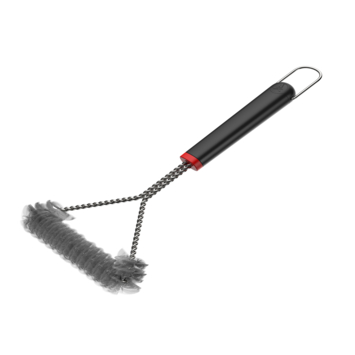 De schoonmaakborstel is gemaakt van metaal met RVS en heeft een gegalvaniseerde afwerking. RVS is sterk en blijft bruikbaar bij regelmatig schoonmaken. De borstel bereikt ook randen en hoekjes van het grillrooster. Zo werk je sneller door op lastige plekken te kunnen schrobben.