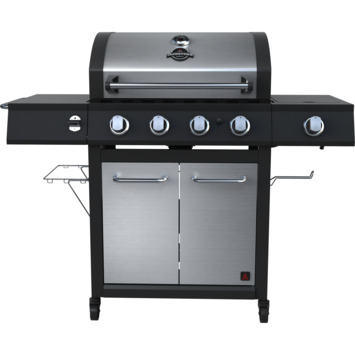 Klaar voor uitgebreide barbecuesessies? Met de Colten gasbarbecue van Jamestown kook je voor een grote groep zonder stress. Vier krachtige branders en een extra zijbrander zorgen voor genoeg power en flexibiliteit. Je grilt vlees, vis en groenten tegelijk op het ruime kookoppervlak van 70,3 x 42 cm. De deksel met thermometer houdt de warmte stabiel en helpt je om alles op de juiste temperatuur te garen. De regelbare luchttoevoer geeft je extra controle tijdens het grillen. Gerechten houd je warm op het extra rooster, zodat alles tegelijk op tafel kan. De anti-aanbaklaag en vetopvangbak maken schoonmaken een stuk eenvoudiger. Dankzij de poten en stevige wielen verplaats je deze barbecue snel en gemakkelijk.