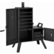 Met de Jamestown Finley vertical smoker voeg je eenvoudig rooksmaak toe aan je gerechten. Deze rookbarbecue is geschikt voor langzaam garen van vlees of vis, waarbij rook en warmte zich gelijkmatig verspreiden. Je houdt de temperatuur in de gaten met de ingebouwde thermometer in het deksel. Het grillrooster heeft een diameter van 26,5 cm, voldoende voor meerdere stukken tegelijk. Dankzij de verticale vorm rook je efficiënt op meerdere niveaus. De smoker is gemaakt van metaal en uitgevoerd in zwart. Je gebruikt hem op het terras of in de tuin voor een avond roken en grillen met familie of vrienden.