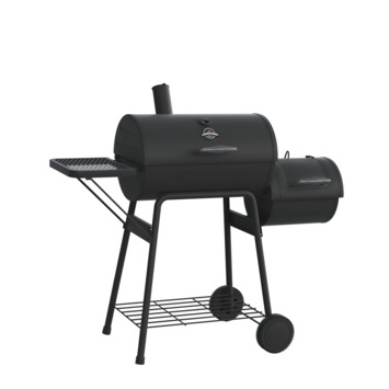 De Jamestown Smoker Aldon is een houtskool BBQ die je niet mag missen voor grotere barbecues. Met een groot kookoppervlak van 58 x 37 cm kun je een flinke hoeveelheid vlees, groenten en vis tegelijk bereiden. Met de extra zijbrander maak je binnen een handomdraai nog meer gerechten klaar. Deze BBQ werkt op houtskool, voor die heerlijke rokerige smaak die je zoekt. Het stevige metalen ontwerp zorgt voor een mooie uitstraling en is perfect voor buitengebruik. Dankzij de wielen kun je de houtskool BBQ makkelijk verplaatsen naar de gewenste plek in je tuin. De BBQ heeft afmetingen van 56 x 132 cm en een hoogte van 118 cm, waardoor je er comfortabel mee kunt koken, zelfs voor grotere groepen.