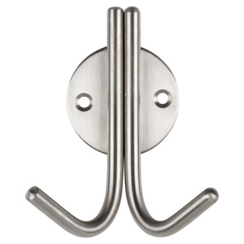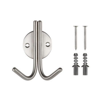 Op zoek naar een dubbele jashaak? Deze jashaak heeft 2 haken. De metalen jashaak is uitermate geschikt voor verschillende ruimtes zoals de hal, keuken en keuken. De haak heeft een RVS-kleur en wordt geleverd met bevestigingsmateriaal. De jashaak is zeer eenvoudig te monteren.