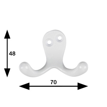 Op zoek naar een dubbele jashaak? Deze jashaak heeft 2 haken. De metalen jashaak is ideaal om te gebruiken in de hal, badkamer en keuken. De witte haak wordt geleverd inclusief bevestigingsmateriaal. Prettig is dat de haak zeer eenvoudig te bevestigen is.