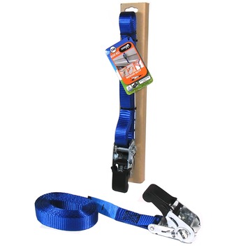 Deze spanband is voorzien van een rubberen ratel voor het fixeren van goederen tijdens onder andere het vervoeren. Zo weet je zeker dat je spullen op hun plek blijven tijdens het transport. De Jumbo spanband blauw 5m 25mm met rubberen ratel voor extra grip is gemakkelijk, snel en veilig in gebruik. Dit maakt de band een perfect vastsnoerinstrument. De blauwkleurige band van polypropyleen heeft een lengte van 5 meter, wordt geleverd inclusief een hoekbeschermer en garandeert een belasting van maximaal 600kg. Kortom: de perfecte tool voor het veilig vervoeren van je goederen.