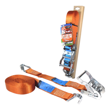 Jumbo spanband oranje 6m 38mm met ratel en J haken