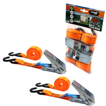 Jumbo spanband oranje set 2 x 3,5m 25mm met ratel en S haken