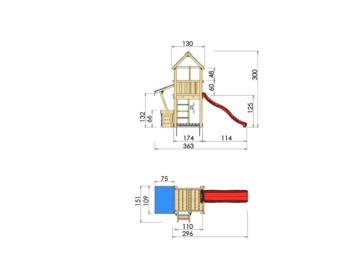- Oppervlakte van het speeltoestel met glijbaan: 296x151 cm