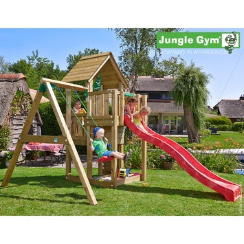 Een tripje naar speeltuin is niet meer nodig met de Jungle Gym speeltoestellen. De kinderen kunnen gewoon in de achtertuin buiten spelen met een Jungle Gym Cubby klimtoestel. De houten speeltoren heeft een puntdak, klimmuur, zandbak en een lange glijbaan. De glijbaan is daarnaast ook op het water aan te sluiten. Tijdens de warme dagen maak je er in een handomdraai een waterglijbaan van. Genoeg mogelijkheden om plezier mee te hebben. Daar bovenop heeft dit speeltoestel ook een houten schommel. Terwijl de een voor de glijbaan gaat, kan de ander lekker klimmen of schommelen.