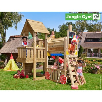 Met deze trein gaan kleine conducteurs, treinpassagiers, cowboys en indianen op avontuur met een spectaculaire reis door de woestijn of jungle. De spannendste klimmogelijkheden, beste uitkijkpunten, mooiste sturen en snelste wielen zorgen ervoor dat alle zintuigen worden geprikkeld. Een tripje naar speeltuin is niet meer nodig met de Jungle Gym speeltoestellen. De kinderen kunnen gewoon in de achtertuin buiten spelen met een Jungle Gym Cubby klimtoestel. De glijbaan is daar bovenop ook op het water aan te sluiten. Tijdens de warme dagen maak je er in een handomdraai een waterglijbaan van. Genoeg mogelijkheden om plezier mee te hebben dus.